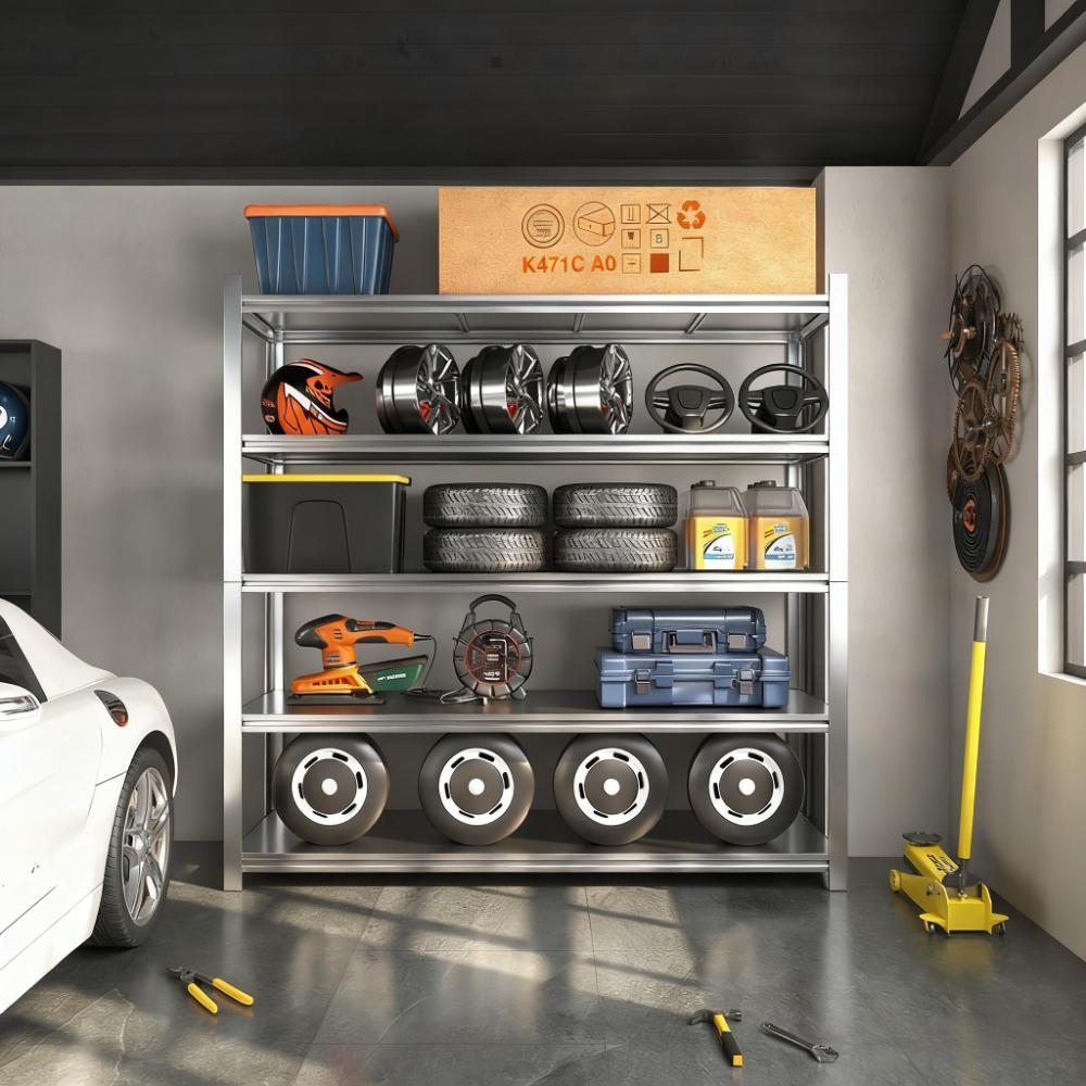 Heavy-Duty Construction – This garage shelving unit is designed to support heavy loads, featuring a strong metal frame capable of holding up to 3000LBS. Its sturdy construction ensures long-lasting durability and stability, making it the ideal choice for organizing various items in your garage or workspace.